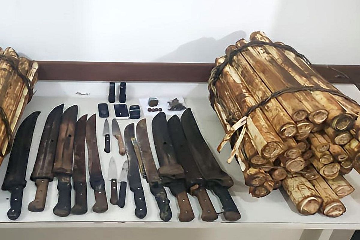 Foi constatado que o local tinha uma estrutura com camas e outros recursos que permitiam aos palmiteiros permanecer dias na mata. Os policiais militares encontraram facas, facões, lanternas, projéteis de espingarda e 55 gramas de maconha, além de feixes de palmitos recém-retirados.