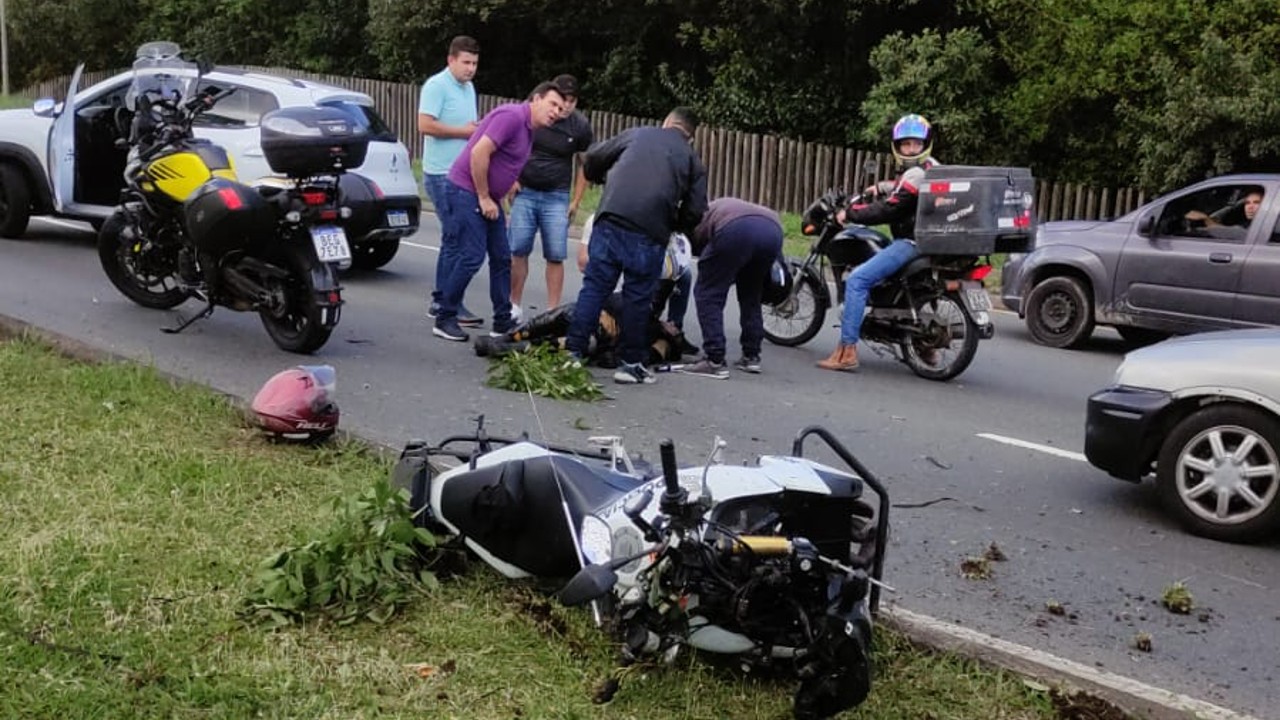 Um cabo e um soldado da Polícia Militar, em duas motos, bateram contra um anteparo na Linha Verde (BR-476) na tarde desta segunda-feira (09). O acidente duplo aconteceu próximo ao Hospital Erasto Gaertner, em Curitiba.