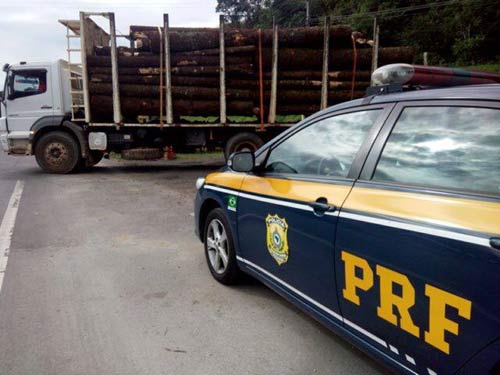 A Polícia Rodoviária Federal (PRF) apreendeu neste sábado (30) em Curitiba (PR) um caminhão carregado com toras de araucária, árvore conhecida como pinheiro-do-paraná. Os documentos relativos à carga estavam em situação irregular. Abordado no quilômetro 596 da BR 376, no Contorno Sul, o caminhão tinha parte da carga mais longa que a sua carroceria.