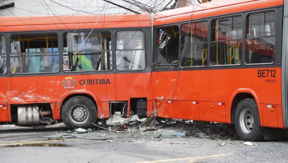 O colisão de um biarticulado da linha Santa Cândida/Capão Raso e um articulado da linha metropolitana Fazenda Rio Grande/Curitiba aconteceu por volta das 6 horas de sábado (9), entre a Avenida Visconde de Guarapuava e a Travessa da Lapa.