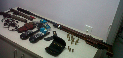Durante o cumprimento dos mandados de prisão, os policiais apreenderam armas, rádios comunicadores da polícia, além de três pés de maconha que estavam dentro de uma casa.