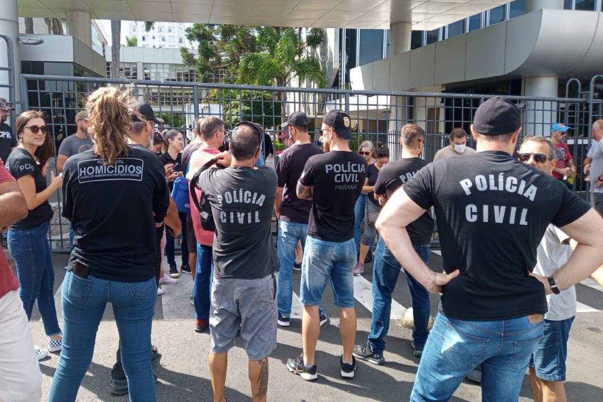 Policiais civis e militares protestam, desde a última segunda-feira (28), em frente ao Palácio Iguaçu e à Assembleia Legislativa do Paraná (Alep). Os servidores não concordam com os valores para o reajuste salarial apresentados pelo governo estadual e pedem mais tempo para discutir as propostas. O aumento orçamentário dos reajustes, segundo o governo, passaria de R$ 400 milhões no ano apenas na PM. Na Civil e Polícia Científica, impacto previsto é de R$ 80 milhões/ano. Nesta quarta-feira (30), viaturas do Batalhão de Polícia de Choque podem ser vistas no entorno do prédio da Alep.