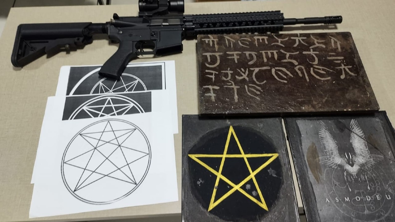A Polícia Civil do Paraná (PCPR), em parceria com a Polícia Civil do Rio de Janeiro e o Ministério Público do Rio de Janeiro (MPRJ), apreendeu materiais satânicos e uma arma de airsoft durante operação contra um grupo extremista que fazia apologia ao nazismo e disseminava ódio a negros e judeus em redes sociais, na manhã desta quinta-feira (16), nas cidades de Londrina, no norte do estado, Araucária, na Região Metropolitana de Curitiba, e Campina da Lagoa, no oeste.