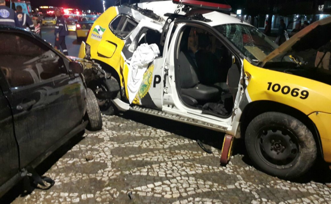 A colisão aconteceu por volta das 19h20, no cruzamento da Avenida Winston Churchill com a Rua Santa Mônica, no bairro Capão Raso, em Curitiba. Conforme apurou a Tribuna do Paraná com a PM, duas viaturas seguiam em comboio na canaleta dos biarticulados da avenida quando a motorista do Pálio cruzou e não viu a viatura.