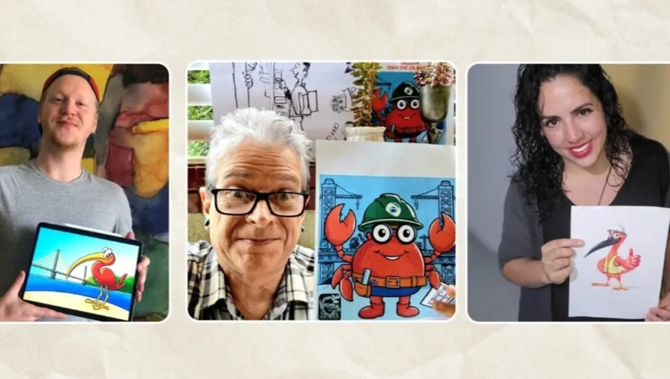 “O personagem foi inspirado pela vida marinha da região e pela importância da ponte. Pesquisei muito a flora e a fauna locais. O caranguejo é um bichinho muito simpático e parece ser um grande trabalhador. Usei técnicas de ilustração digital e muitos esboços a lápis para criar um visual amigável e moderno, visando representar o Paraná com carisma e energia”, afirma Cortiano.