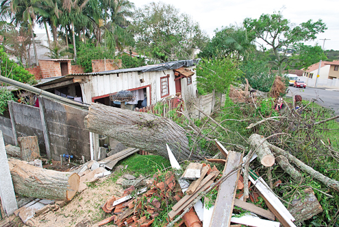 O engenheiro civil Jorge Augusto Serafim nunca tinha visto nada igual. “Foi apavorante. Mesmo com o vidro fechado, entrava água no escritório”, relata. “O vizinho veio dizendo que o prédio ia cair, tinham fios chicoteando na rua e não dava para enxergar nada”. Sem energia elétrica, ele não pode nem trabalhar ontem. Dono de restaurante na Rua Antônio Costa, Dirceu Ristow Junior conta mais de R$ 2 mil em prejuízo, por causa de vidros quebrados, destelhamento e alimentos perdidos por falta de refrigeração.