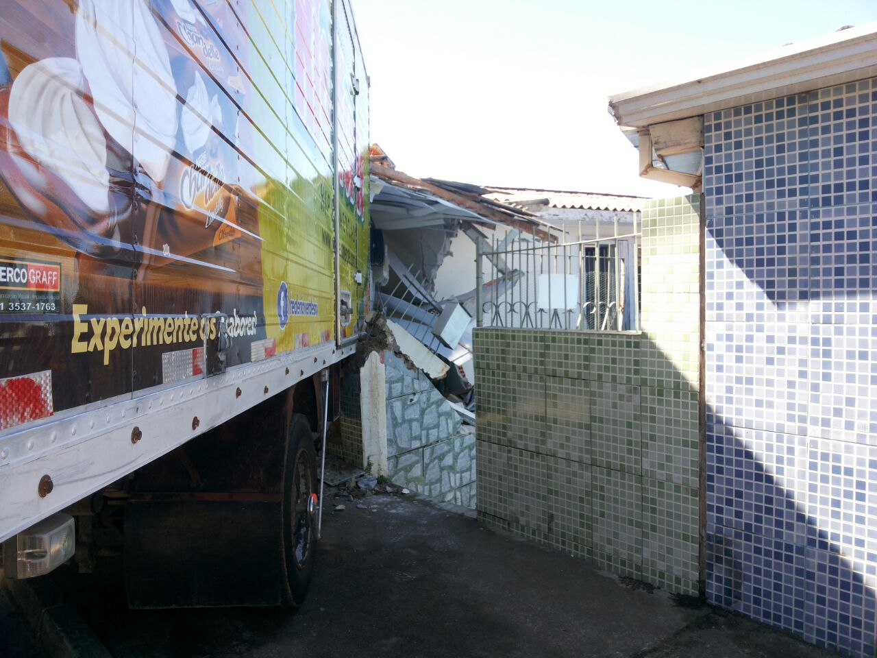 A despreocupação de um motorista, que sequer imaginava o que poderia acontecer, por pouco não causou uma tragédia no final da manhã desta terça-feira (23), no Jardim Monza, em Colombo, na Região Metropolitana de Curitiba (RMC). A porta do caminhão se abriu, ele caiu e o veículo, descontrolado, invadiu um atelier. Duas pessoas se feriram.