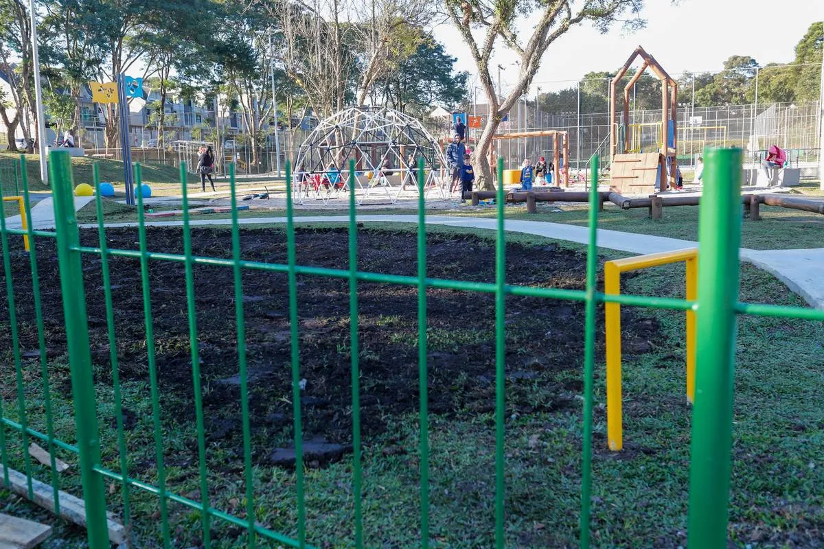 A mais recente intervenção ocorreu no cercamento do parquinho infantil, utilizado principalmente por crianças de 2 a 6 anos. A cerca, que inicialmente estava posicionada próxima ao início de um dos “caminhos” internos da praça, precisou ser removida e reposicionada.