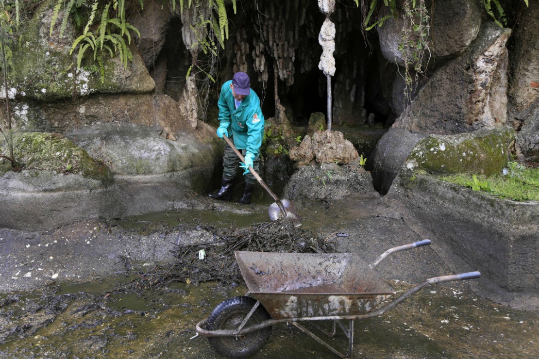 A limpeza começou pelo menor dos lagos, que já estava com uma quantidade de água abaixo da sua capacidade em razão da estiagem e das rachaduras do fundo e bordas. A água – e os peixes – foram levados para o segundo lago para que fosse possível retirar o lodo, sedimentos e o lixo. A próxima etapa é a obra civil para o conserto das rachaduras.