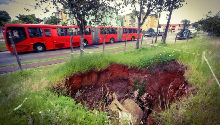 A prefeitura de Curitiba concluiu a reparação da área próxima à linha do trem, no bairro Cajuru. As obras para conserto de um buraco localizado nas margens da Avenida Maurício Fruet, ao lado da estação-tubo Germânia, começou 12 de abril.