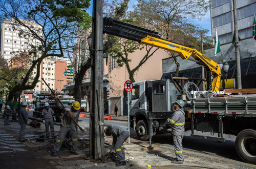Uma ação conjunta da Prefeitura de Curitiba e da Copel retirou neste sábado (06) 40 postes de energia da Rua Comendador Araújo, entre as ruas Visconde de Nacar e Desembargador Mota, na região central da cidade. A ação reforça o compromisso da atual gestão de facilitar os deslocamentos e a circulação de pessoas, com base nos princípios de sustentabilidade e de desenvolvimento local.