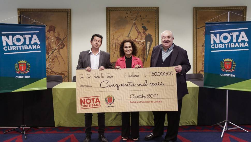 Foram entregues, nesta quarta-feira (16), os prêmios do 19º sorteio do Nota Curitibana, programa da Prefeitura de Curitiba que incentiva a emissão de nota fiscal na área de serviços. Os vencedores foram a professora Angela Afonsina de Souza Barbosa, a cirurgiã dentista Gisele Zattar Povh e o aposentado Pedro Lineu Orso.