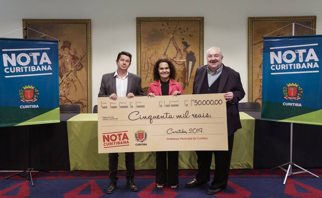 Foram entregues, nesta quarta-feira (16), os prêmios do 19º sorteio do Nota Curitibana, programa da Prefeitura de Curitiba que incentiva a emissão de nota fiscal na área de serviços. Os vencedores foram a professora Angela Afonsina de Souza Barbosa, a cirurgiã dentista Gisele Zattar Povh e o aposentado Pedro Lineu Orso.