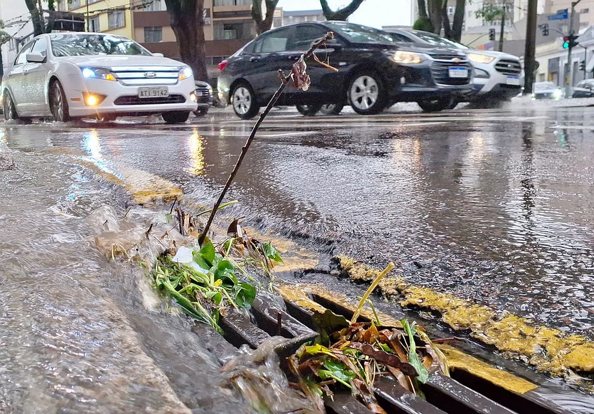 A recomendação é evitar deslocamentos não urgentes durante a manhã em regiões como o Centro e o Batel, onde alagamentos são frequentes.