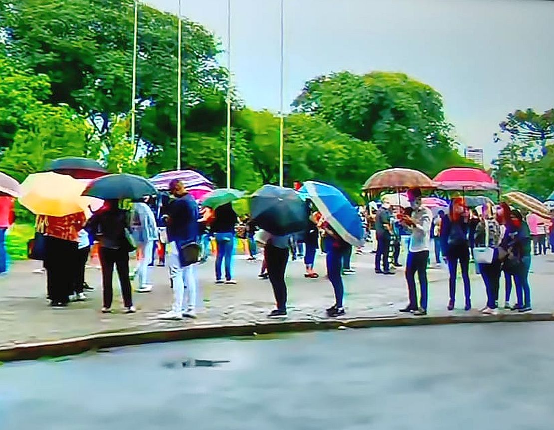 Pelo segundo dia seguindo, uma fila gigantesca se formou na frente ao chamado Pavilhão da Cura, no Centro de Exposições do Parque Barigui, local escolhido pela Prefeitura de Curitiba para vacinar os profissionais da saúde contra a covid-19. Antes mesmo do início da vacinação, a filha já “vencia” os limites do cordão de isolamento e segurança sanitária preparados pela organização.