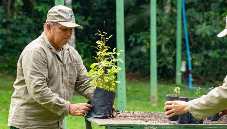 Todas as mudas estão sendo produzidas desde janeiro de 2023 no viveiro da SPVS, com sementes coletadas nas três Reservas Naturais da SPVS, o que garante as condições genéticas qualificadas das espécies produzidas.