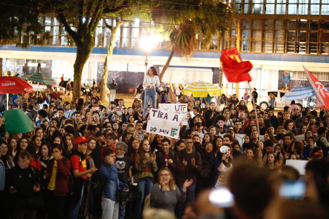 A mobilização desta quarta foi organizada pelo coletivo Lutar e Educar, vinculado ao curso de Pedagogia da UFPR. Por volta das 18h30, a Praça Santos Andrade já estava tomada por manifestantes. Até esse horário, não havia bloqueio nas ruas da região — embora causasse lentidão nas vias próximas à praça e também à Reitoria da UFPR.