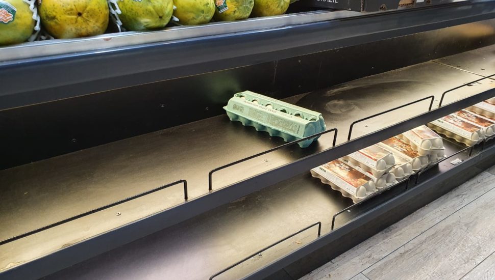 Depois do pronunciamento do governador Ratinho Júnior nesta segunda-feira (16) sobre novas medidas de prevenção do coronavírus no estado, muitos curitibanos correram para os supermercados numa tentativa de estocar alimentos e materiais de limpeza. Na tarde desta terça-feira (17), itens como álcool gel, papel higiênico, enlatados e ovos começaram a desaparecer das gôndolas de alguns supermercados de Curitiba.