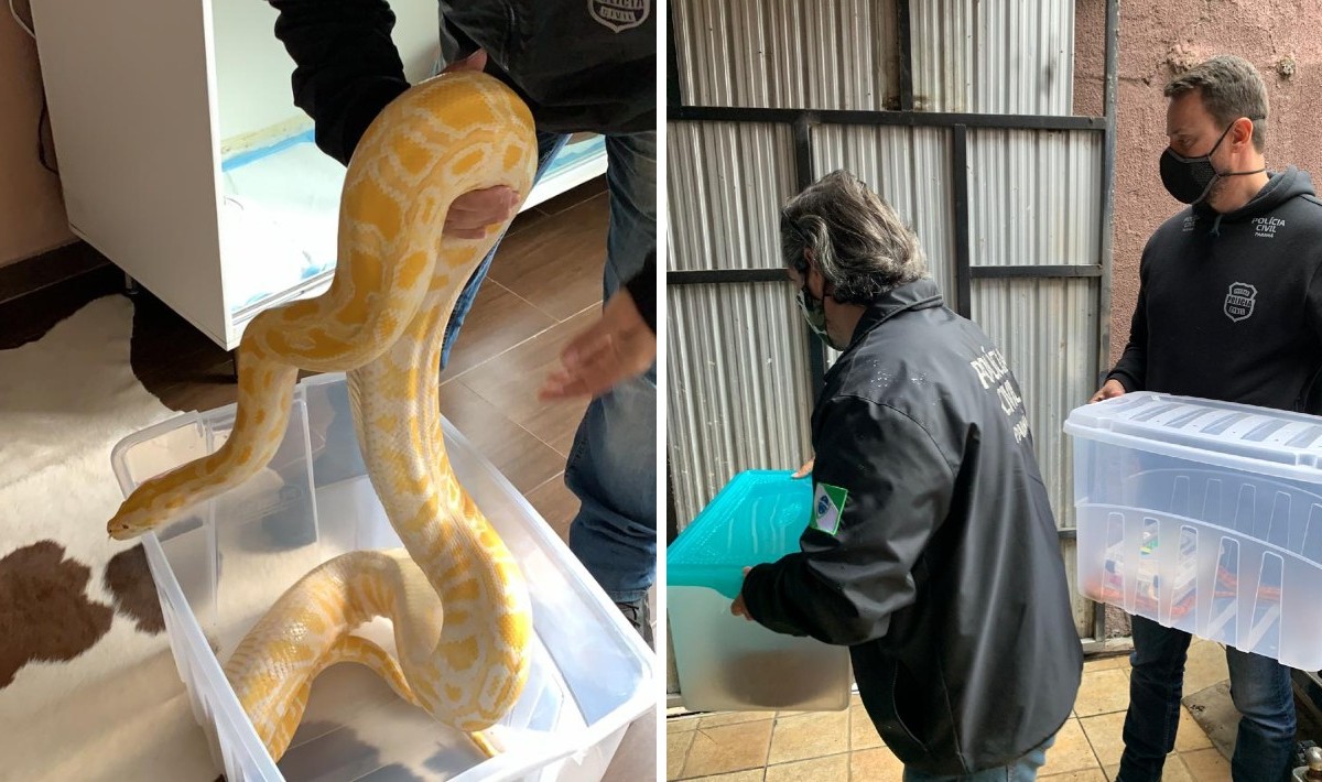 “Policiais receberam a denúncia de que uma casa na CIC tinha animais silvestres. O homem não tinha documentos e ele foi conduzido à delegacia pelo crime de manter animal silvestre em cativeiro”, explicou o delegado da Delegacia de Proteção ao Meio Ambiente, Matheus Laiola, responsável pela operação. O homem pode pegar até um ano de prisão pelo crime envolvendo as cobras, que serão encaminhadas ainda nesta quarta-feira para o Instituto Ambiental do Paraná (IAP).