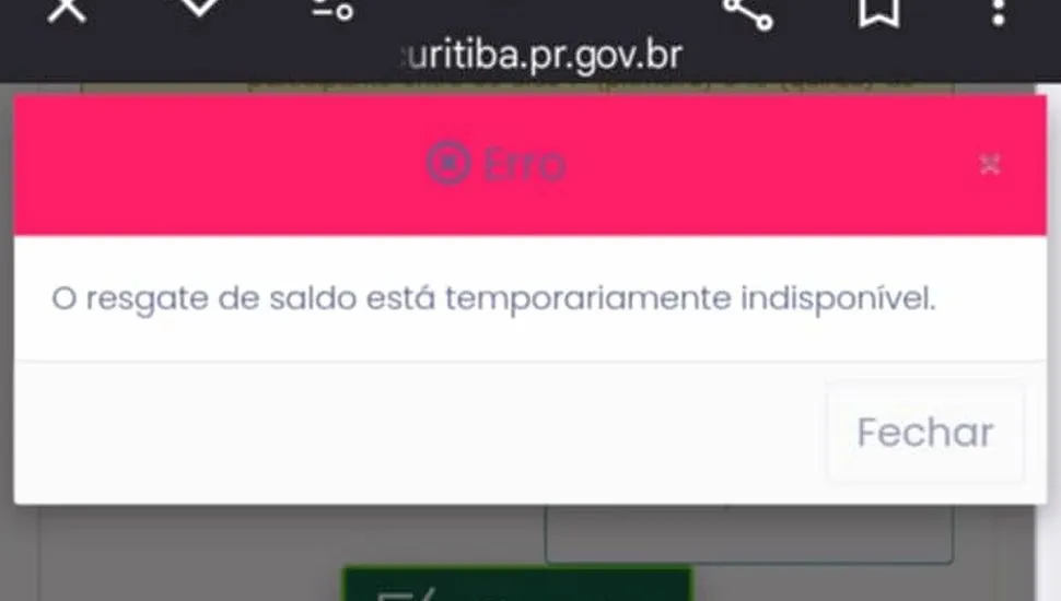 Alguns leitores da Tribuna mandaram mensagem comentando sobre a indisponibilidade do sistema de resgate de créditos do Nota Curitibana, programa que retorna ao consumidor parte dos impostos pagos em serviços na cidade de Curitiba. Por mais de uma vez, em dias diferentes, não foi possível solicitar o saque do dinheiro disponível na conta dos usuários.