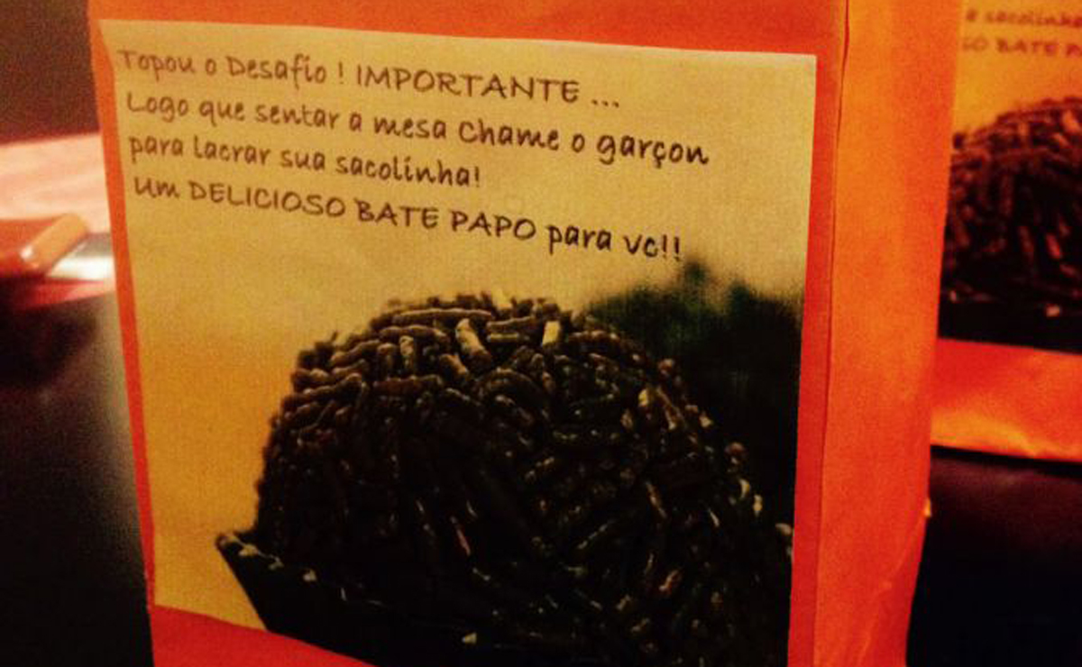 Incomodada com a falta de interação entre os clientes, Valéria decidiu desenvolver uma ação que incentivasse o diálogo. “Tinha que fazer uma coisa democrática, para que a pessoa tivesse o desejo de fazer o desafio. Daí pensamos no brigadeiro”, conta.