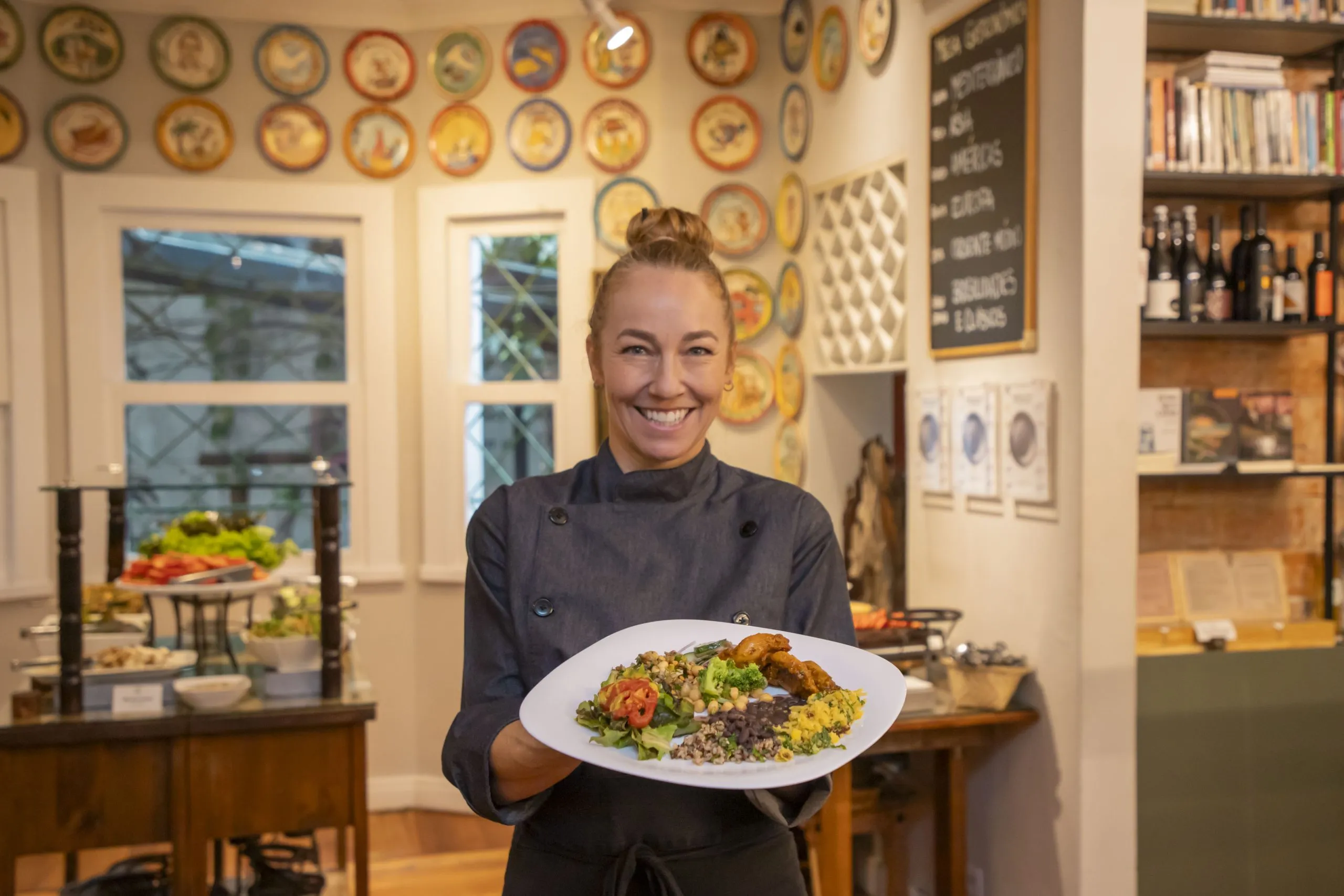 Fundado em 2008, no bairro Batel, o restaurante nasceu com a proposta de valorizar alimentos orgânicos e estabelecer uma relação direta com produtores da região. A empresária explica que sustentabilidade não é apenas conceito. O espaço conta com compostagem de resíduos orgânicos, captação de água da chuva para jardinagem e uso nos sanitários, além de um jardim que abriga colmeias de abelhas nativas sem ferrão.