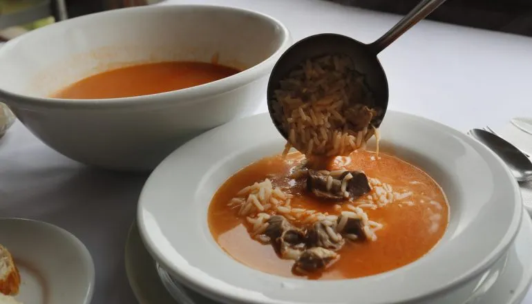 A identidade do Cascatinha está em vários lugares do restaurante, seja na entrada com as pinturas da parede, nas luminárias e ventiladores antigos, nos garçons com mais de 30 anos de casa (veja abaixo a história de dois deles), ou mesmo no tradicional caldo de arroz (brodo) servido como entrada aos clientes dentro de uma sopeira e dali, para um prato fundo. É puro gosto de infância.