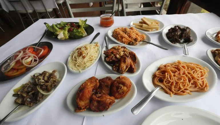 Além do caldo, no rico cardápio tem escarola com bacon, tomate com cebola, lasanha de queijo (a mais consumida), espaguete ao molho vermelho, espaguete alho e óleo, risoto de frango, polenta frita, asinha de frango com alho, frango prensado, frango à passarinho, fígado de frango e moela de frango.