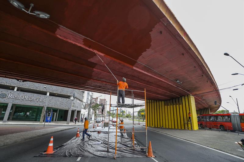A Prefeitura de Curitiba avança em nova etapa da revitalização da região do entorno da Rodoferroviária, desta vez com a pintura do Viaduto do Capanema, no Jardim Botânico. Após amplo serviço de limpeza, a estrutura está recebendo nova pintura antipichação em toda sua área de 11.500 m², que alcança o viaduto de uma ponta à outra.