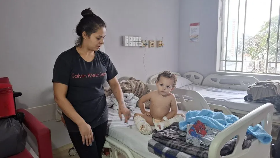 Foi uma grave escaldadura que fez o pequeno Theo, de dois anos, passar 22 dias internado no Hospital Mackenzie entre os meses de junho e julho. Ele teve queimaduras de segundo e terceiro grau nas pernas e pés, após derrubar chá quente em si mesmo, como conta a mãe, Mirian de Oliveira, 24 anos.