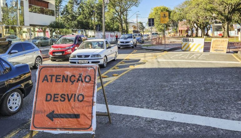 A interrupção da passagem para veículos acontece no trecho entre a Rua Pedro Gusso e Avenida Winston Churchill. O local está sinalizado e os motoristas precisam ficar atentos à alteração.