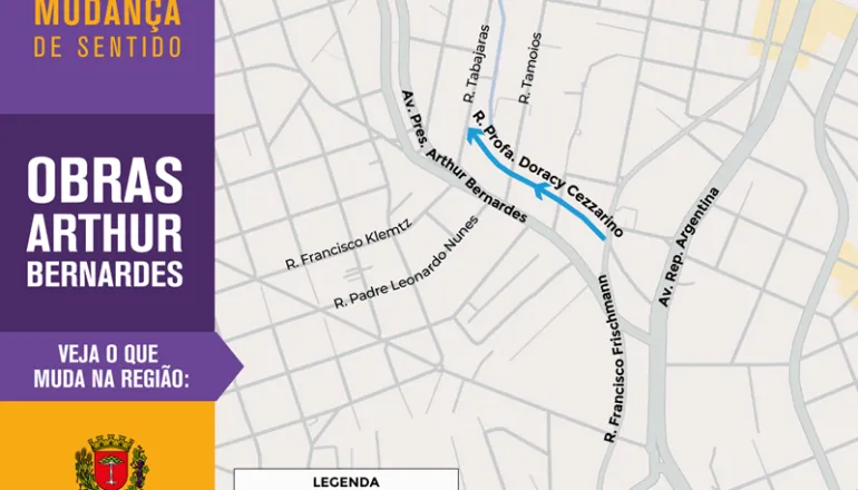Com a nova configuração, quem trafega pela Rua Francisco Frischmann poderá virar à direita na Professora Doracy Cezzarino, depois à esquerda na Rua Tamoios e, em seguida, à direita na Avenida Arthur Bernardes.