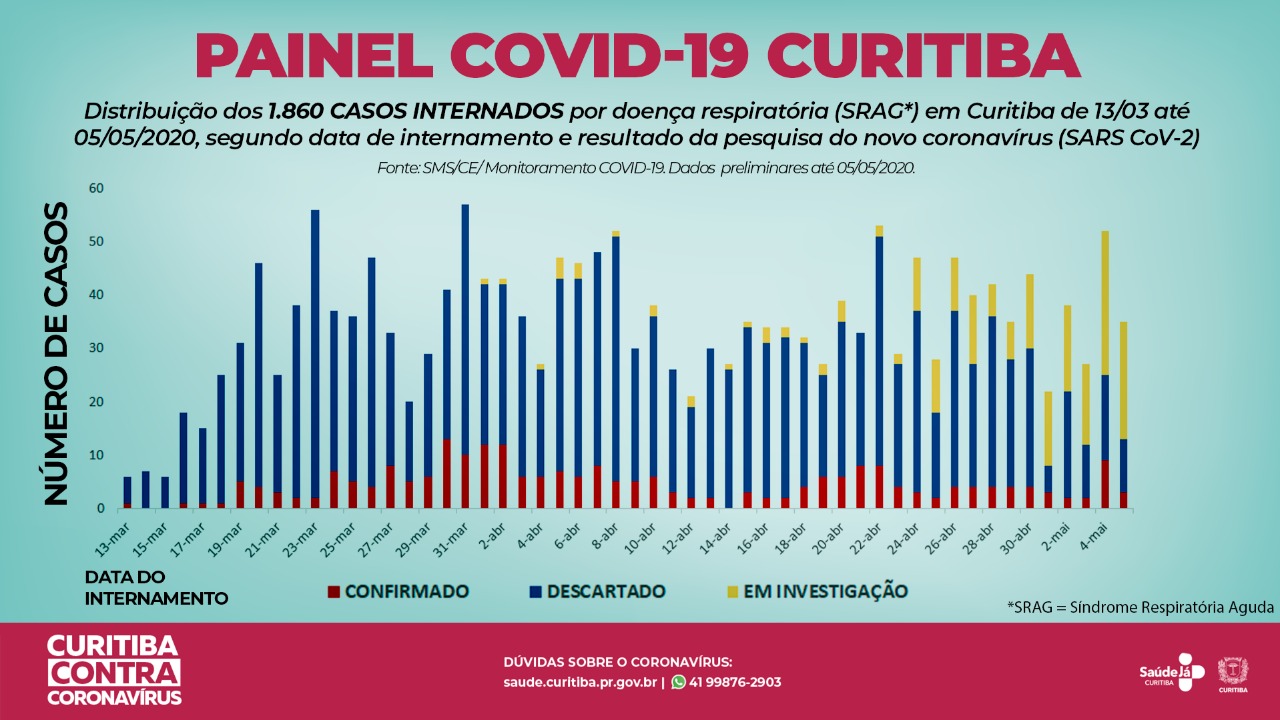 Conforme o boletim da SMS, Curitiba tem hoje 69 pessoas internadas, 32 em unidades de terapia intensiva (UTI) e nove em estado mais crítico, que contam com o auxílio de respiradores.