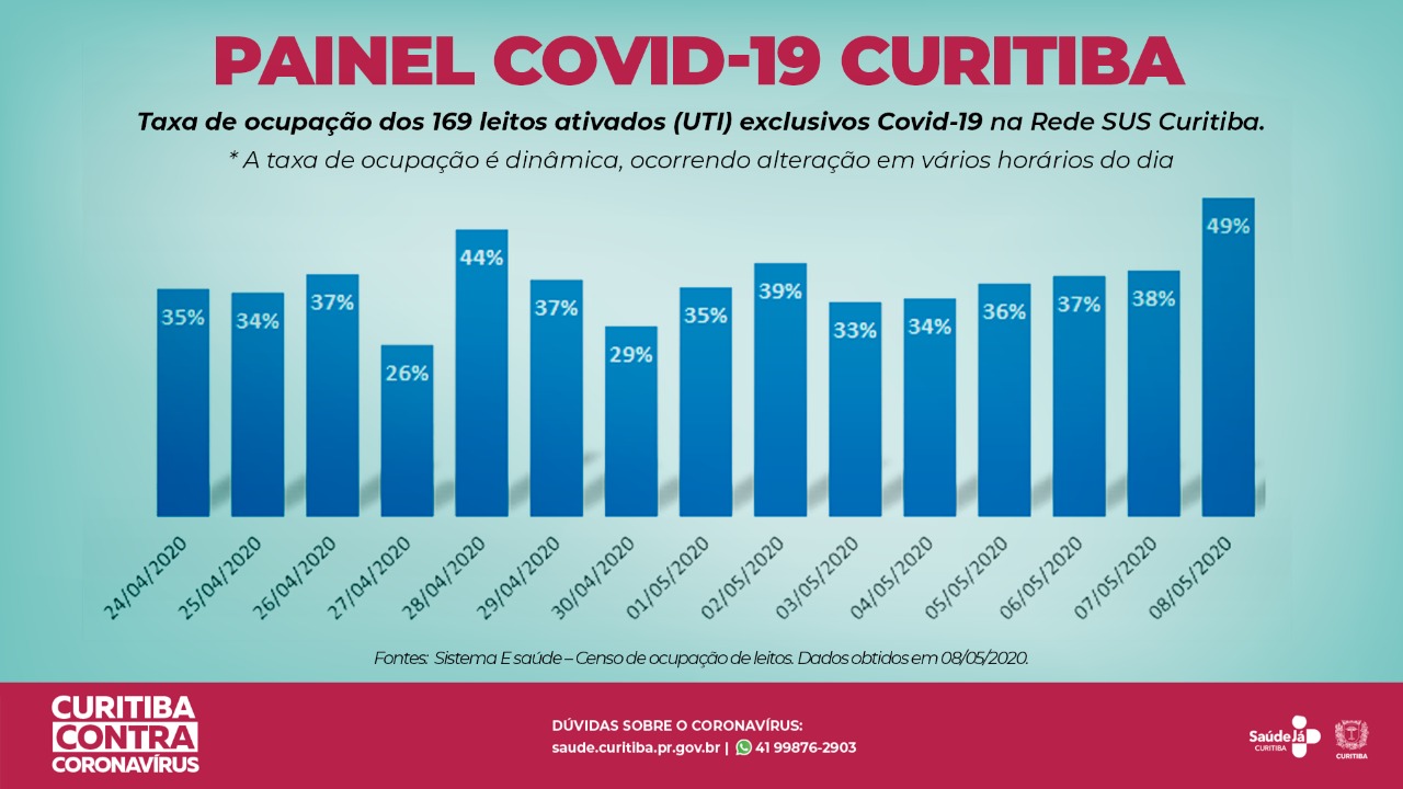 Na capital paranaense há 169 leitos de UTI ativados para o atendimento exclusivo dos pacientes de novo coronavírus. Até esta sexta-feira, 49% deles estavam ocupados por pessoas que testaram positivo para covid-19 ou que estão com suspeita da doença.