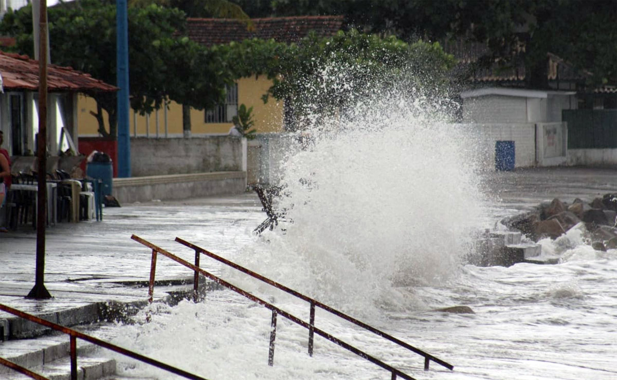 Na tarde deste domingo (10), o mar já subiu em Matinhos, no litoral do Paraná, conforme as fotos acima. O flagra feito pelo leitor Almir Alves, no Pico de Matinhos, mostra as ondas invadindo o calcadão.