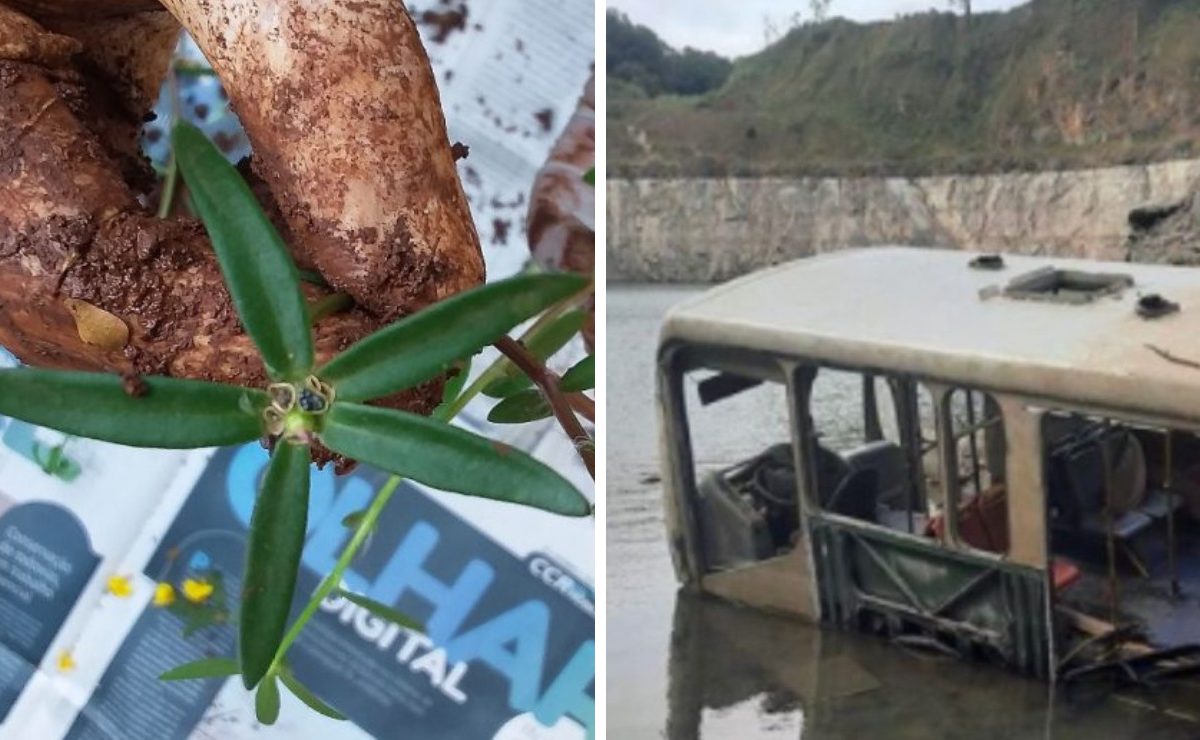 *Bombeamento de água em pedreira na região de Curitiba expõe carcaça de ônibus