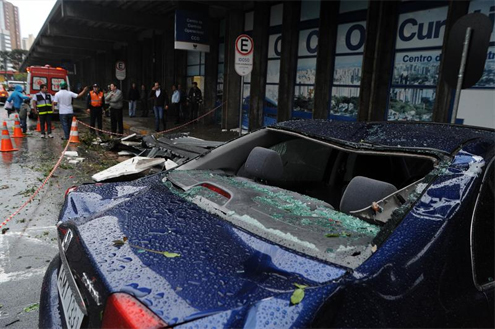 O temporal provocou o destelhamento do prédio da Urbs, com o deslocamento de peças de cobertura que caíram sobre dois carros – um deles da Secretaria Municipal de Trânsito – e provocaram a queda da cobertura da ala onde funciona a Serra Verde Express. Funcionários, voluntários e equipes da defesa civil e corpo de bombeiros entraram imediatamente em ação. A Defesa Civil isolou a área em frente à Serra Verde e determinou a saída de funcionários e clientes do prédio.