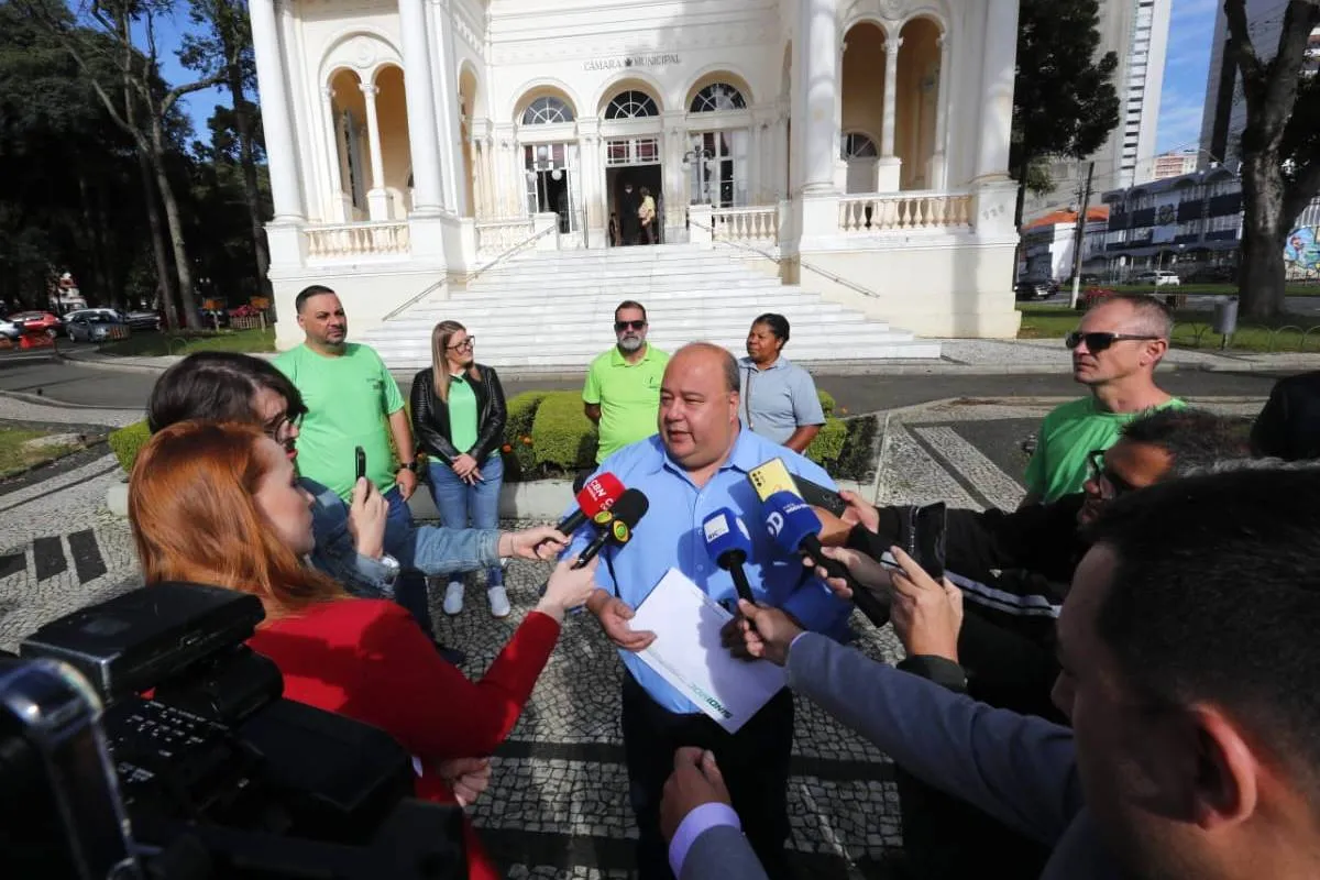 Antes da reunião, representantes da categoria se reuniram em frente ao prédio da Câmara Municipal de Curitiba, com carros de som para chamar atenção da mobilização.