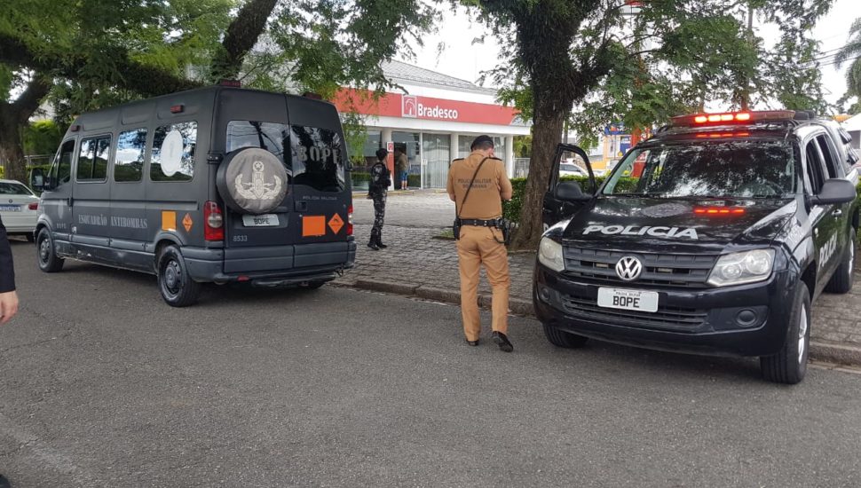 Uma suspeita de bomba obrigou a polícia a evacuar uma agência bancária na tarde desta quarta-feira (8), no Hauer, em Curitiba. A suspeita era de que um artefato explosivo tivesse sido colocado no guarda-volumes do banco por um homem. A segurança desconfiou do comportamento do suspeito, já que ele não se dirigiu para o local dos caixas, apenas guardou uma bolsa no armário e foi embora. O Esquadrão Antibombas do Batalhão de Operações Policiais Especiais (Bope) foi acionado e constatou que não havia explosivos no local.