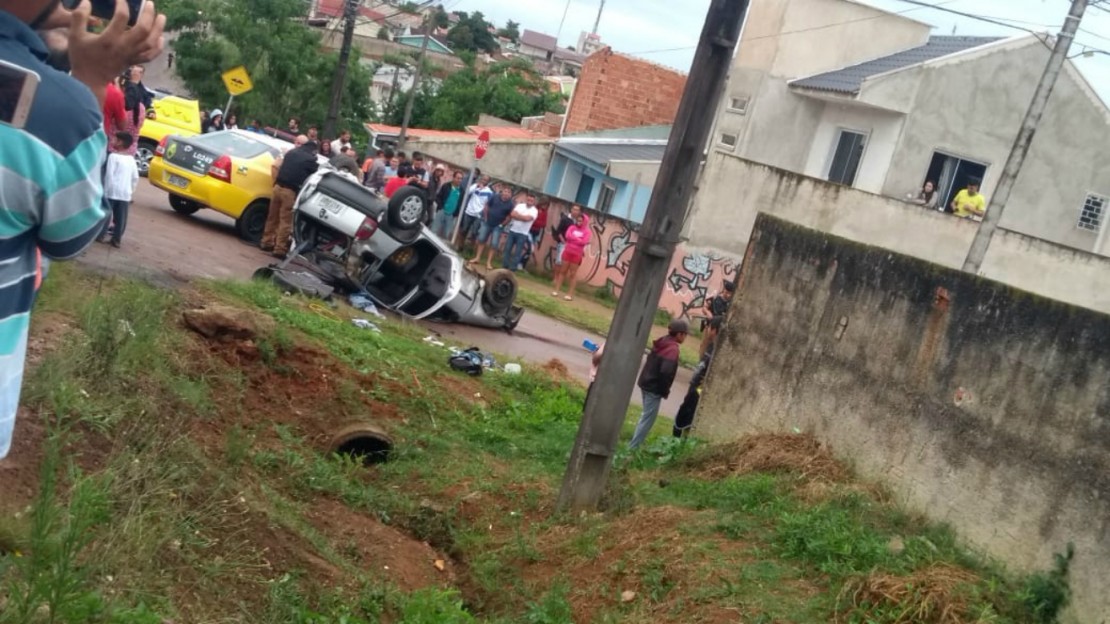 Suspeitos de tráfico de drogas capotaram um carro no bairro Nações, em Fazenda Rio Grande, por volta das 17h20 deste domingo (18). Entre os suspeitos estava uma gestante, que foi encaminhada às pressas ao hospital.