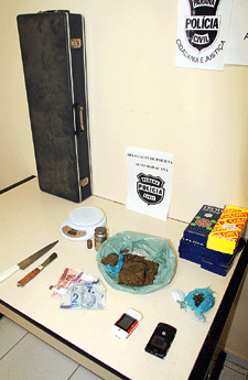 Na tarde de ontem, os policiais resolveram abordar os moradores e encontraram cerca de meio quilo de maconha na residência. Também foram apreendidos R$ 19 em notas, um canivete, uma faca, uma balança de precisão, papéis para enrolar cigarro e um violino.