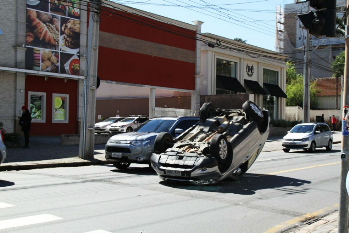 Um susto. Assim definiu uma das motoristas envolvidas num acidente que acabou em capotamento na manhã desta segunda-feira (22), no cruzamento das ruas Augusto Stresser com Almirante Tamandaré, no Juvevê. Apesar do impacto, ninguém se feriu.