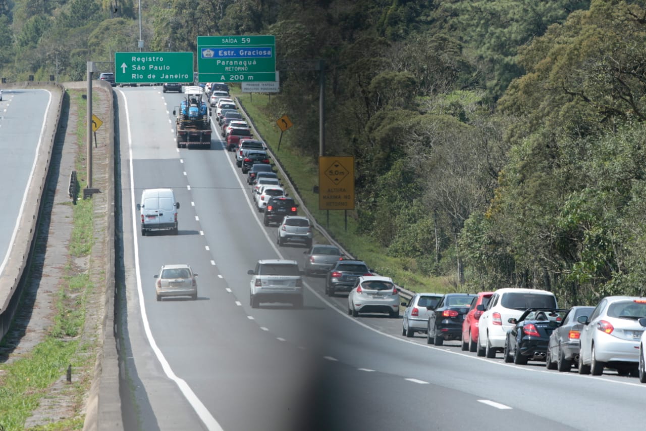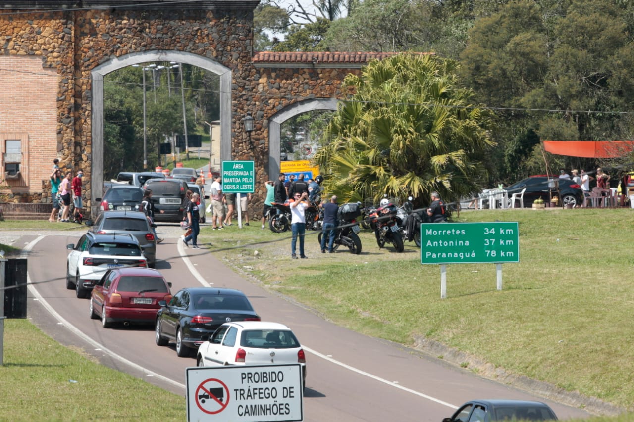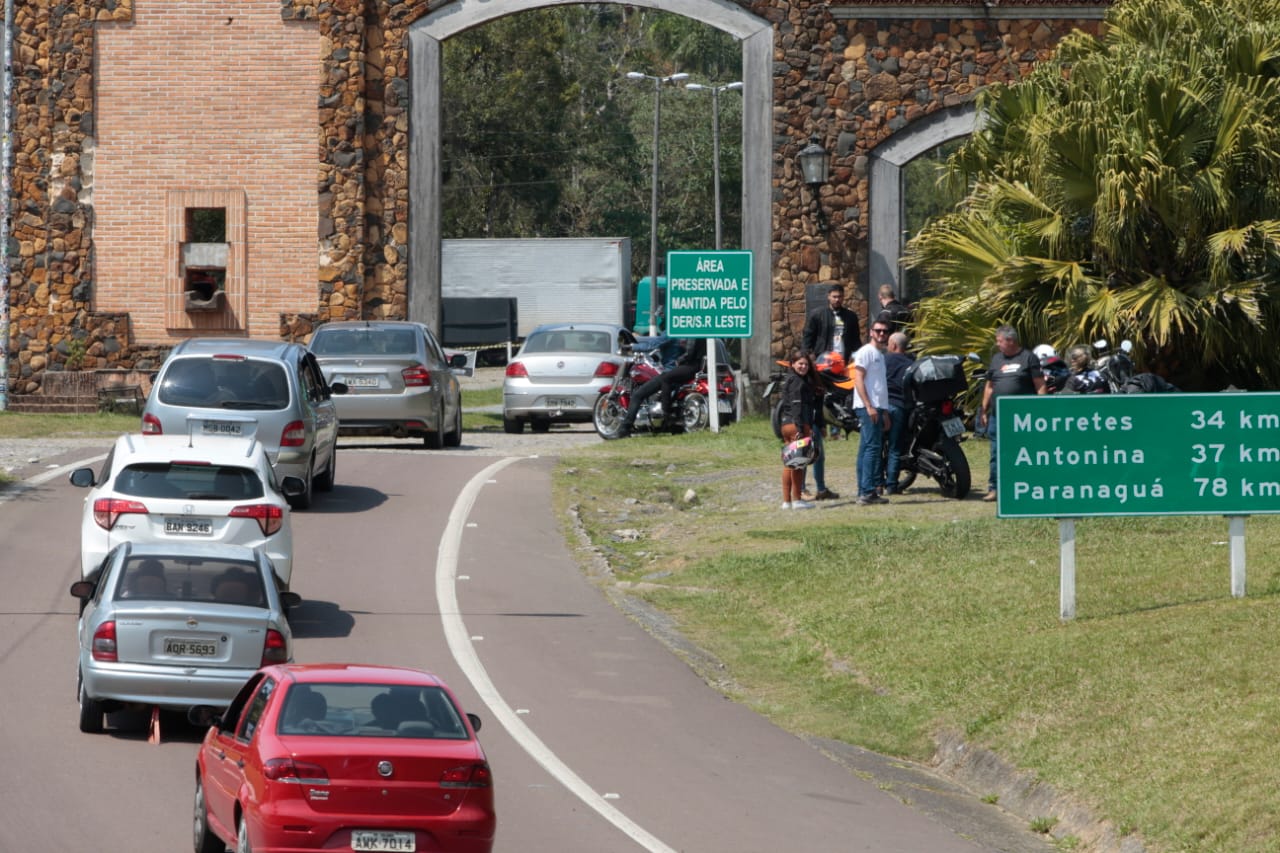 Quem decidiu descer a Estrada da Graciosa (PR-410) neste domingo (6), véspera do Feriado da Independência, acabou se deparando com uma extensa fila logo no início do trecho, no portal histórico que dá acesso ao trecho de paralelepípedo. Nesta manhã, por volta das 11 horas, havia cerca de três quilômetros de congestionamento na região da BR-116 próximo da entrada que chega ao portal.