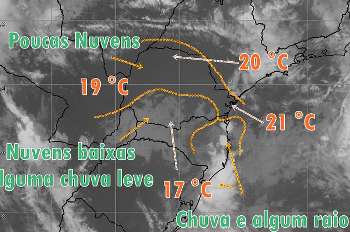 No começo da manhã foram registrados apenas alguns chuviscos isolados. Chuvas fracas e isoladas também foram registradas no sul do estado, divisa com Santa Catarina. Nas demais regiões, o tempo permanece estável.