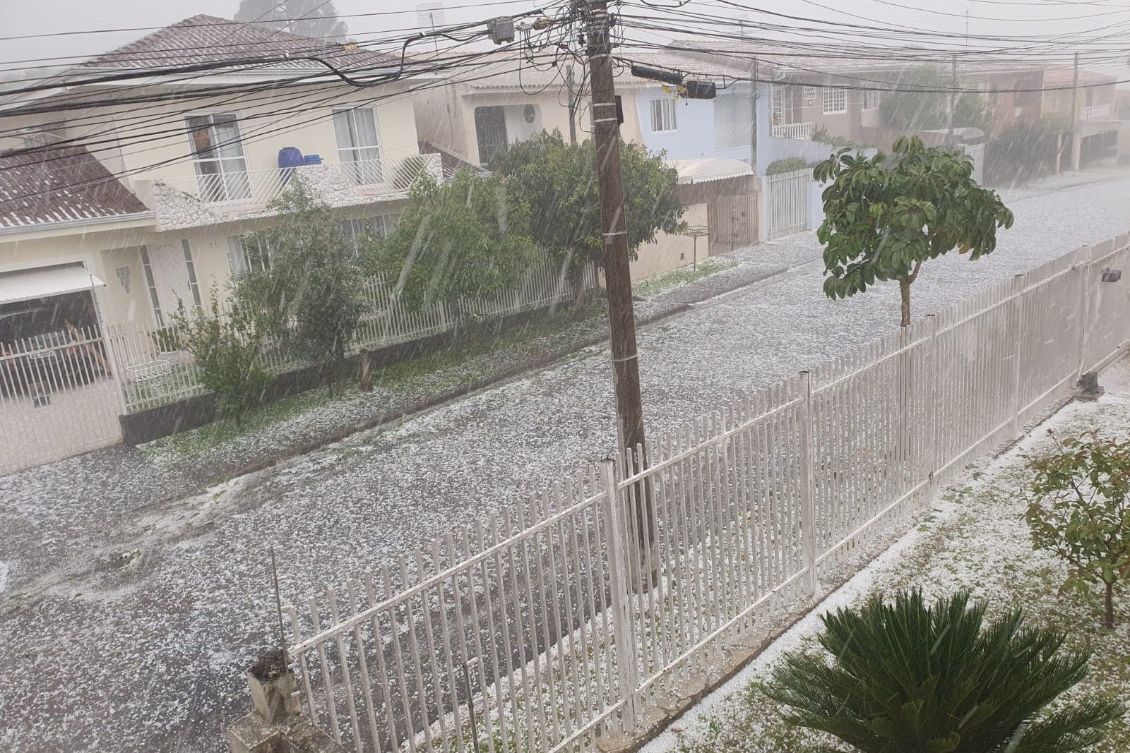 O céu ficou preto e pancadas de chuva com muito granizo foram registradas por volta das 17h30 em diferentes regiões de Curitiba nesta terça-feira (3). De acordo com o Instituto Tecnológico Simepar, diferentes áreas de instabilidade se formaram nesta tarde. A tempestade assustou e o granizo deixou estragos em vários bairros da cidade e também na região metropolitana.