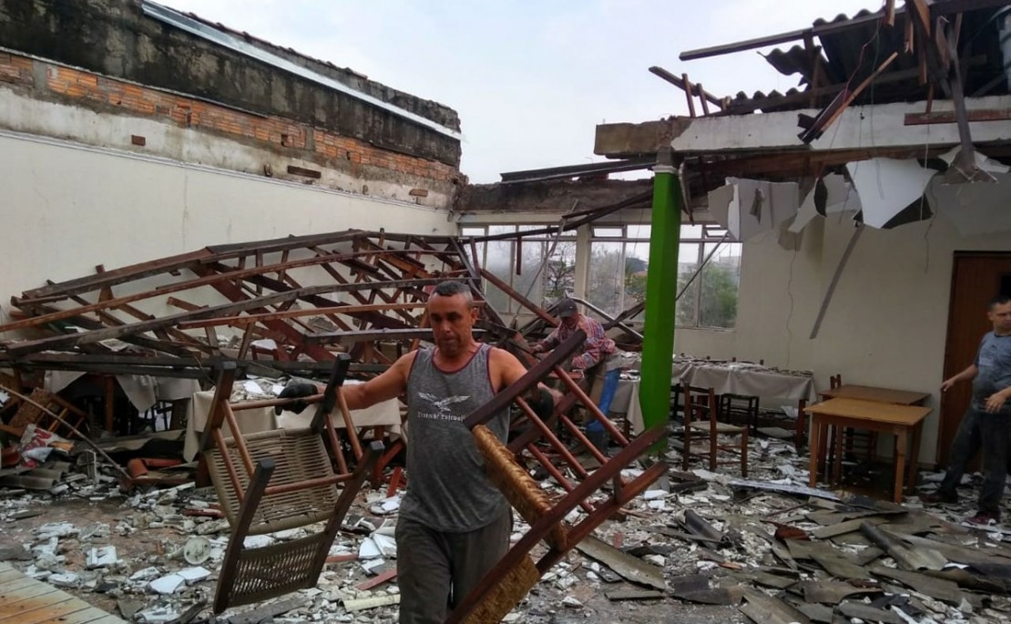 Valdir contou que, no momento da chuva, os funcionários prepararam os últimos ajustes para abrir a churrascaria para o jantar. “Foi um barulho muito forte, mas também tudo muito rápido. Primeiro vi cair aqui dentro, para depois ver o telhado voar para fora. A hora que olhei, o telhado já estava na frente da churrascaria”.