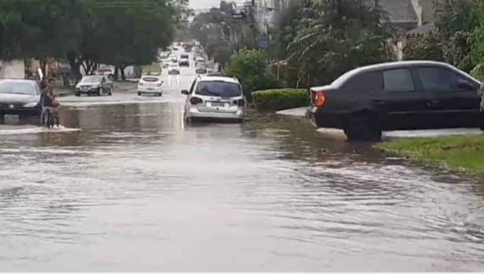 Também no Centro, motoristas encontraram parte da Avenida Visconde de Nacar alagada no início da tarde deste sábado.