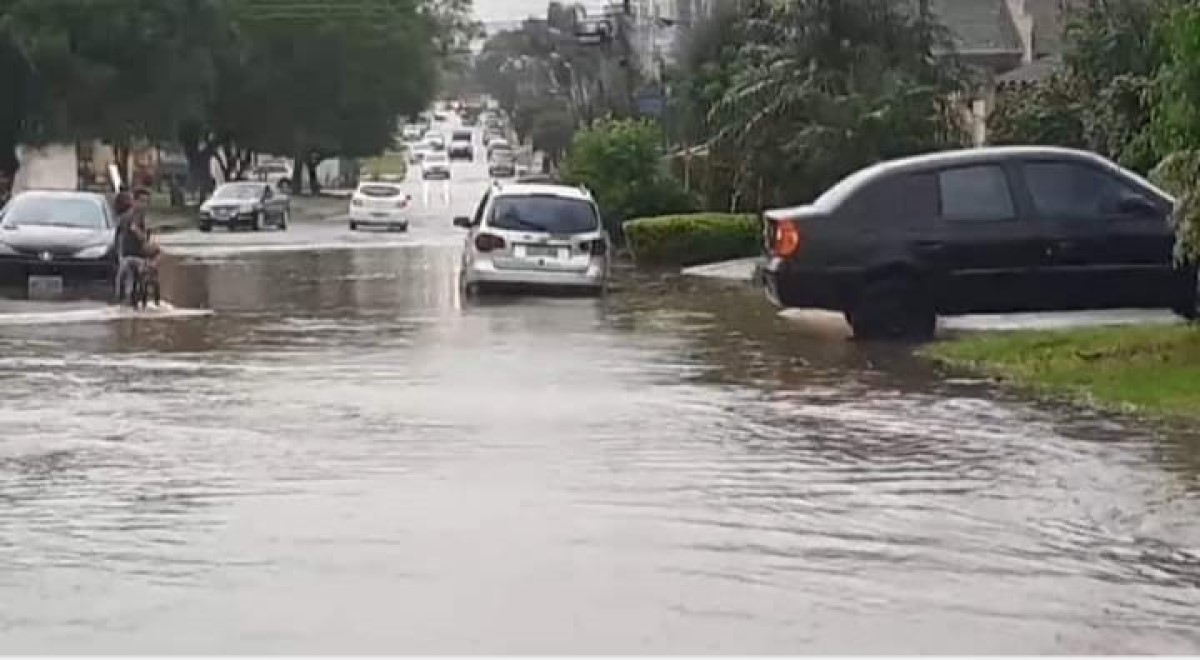 Também no Centro, motoristas encontraram parte da Avenida Visconde de Nacar alagada no início da tarde deste sábado.