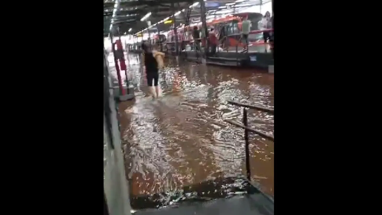A forte chuva que atingiu Curitiba na tarde desta quinta-feira (27) deixou estragos e provocou alagamentos em várias regiões. No Terminal Boqueirão, o volume de chuva foi tão intenso que chegou a alagar parte da área onde os passageiros aguardam os ônibus.