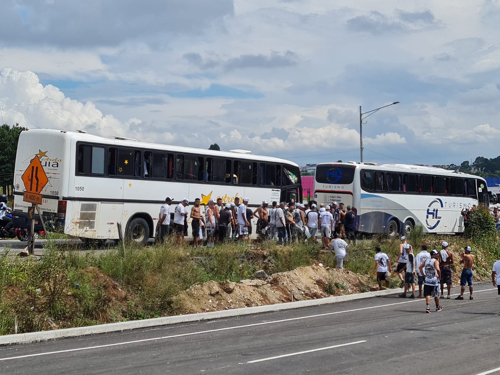 Integrantes da torcida organizada do Atlético-MG afirmam que sofreram uma emboscada logo na chegada de um comboio de ônibus a Curitiba, vindo de Belo Horizonte (MG), nesta quarta-feira. O grupo disse à reportagem da Tribuna que a Polícia Militar não aparece para cumprir a escolta combinada e por isso, na altura do bairro Atuba, tiros foram disparados contra um dos ônibus da caravana.